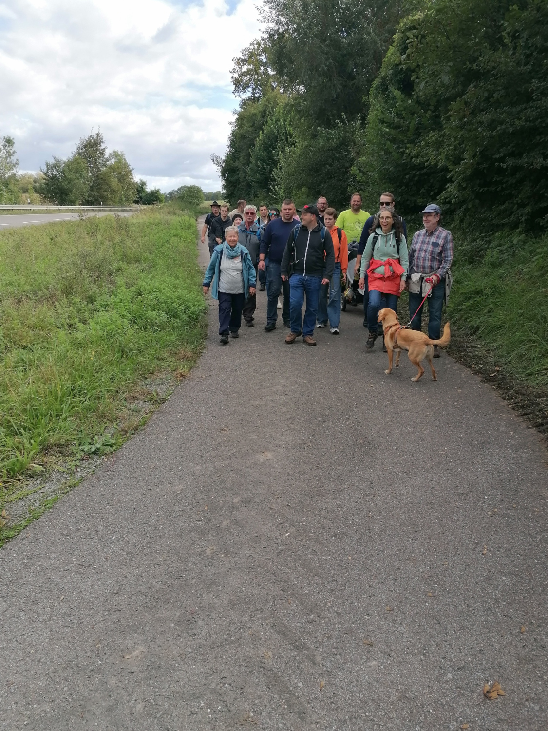 trafen sich am 14. September mit rund 30 Frauen, Männern, Kindern und Hund zum Ausmarsch. Wir starteten Punkt 9 Uhr am Feuerwehrhaus in Rettigheim, um die angekündigten 8 Kilometerchen gemeinsam zu bewältigen.